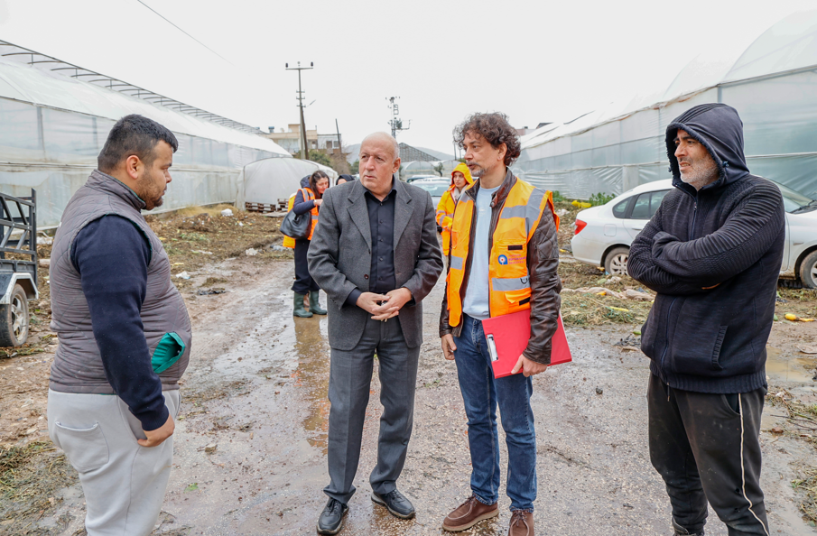 Tarımsal Hizmetler Dairesi Başkanlığı ekiplerinin, örtü altı üretimin yoğun yapıldığı Kumluca, Kaş ve Serik ilçelerinde gerçekleştirdiği incelemelerde, çok sayıda seranın su altında kaldığı, üretimi yapılacak ürünlerde ciddi hasar ve zarar meydana geldiği tespit edildi. Öte yandan, evlerde oluşan zararları yerinde görmek üzere sahaya gelen Sosyal Hizmetler Dairesi Başkanı Güven Ulutekin, görevli ekiplerle birlikte incelemelerde bulundu. Ulutekin, vatandaşların yaşadığı mağduriyetlerin en kısa sürede giderilmesi için tüm ekiplerin seferber edildiğini ve yaraların hızla sarılacağını belirtti.