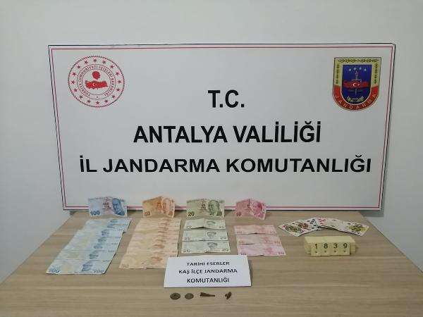 Kaş İlçe Jandarma Komutanlığı ve 15. JASAT Tim Komutanlığı ekipleri, çobanlık yapan İ.Ç.'nin Karadağ Mahallesi İçme Mevkii'nde bulunan çadırında kumar oynattığı bilgisi üzerine harekete geçti. Çadırda yapılan aramada, tarihi eser olduğu değerlendirilen 12 metal sikke, 1 metal kanca şekilli parça, 1 metal halkalı düğme, 1420 TL ile kumar malzemeleri ele geçirildi.