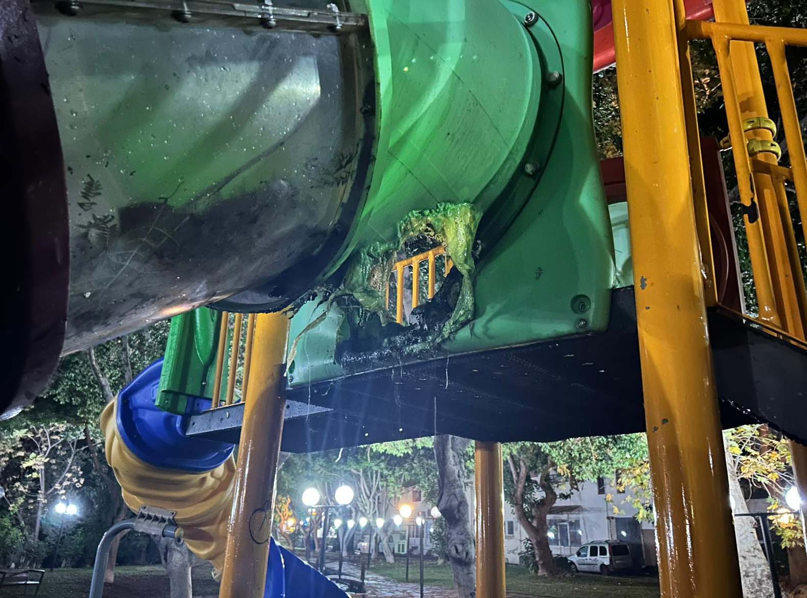 Antalya'da çocukların çakmakla oynadığı sırada çıkan yangında, parktaki kaydırak zarar gördü.