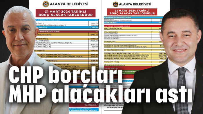 MHP'den yapılan yazılı açıklamada, "2014 yılında bütçesi kadar borcu ile devralınan Alanya Belediyesi, 10 yıllık süre zarfında bütçesini 40 kat büyüterek, bütçesinin yüzde 10'un altında bir borç ile ve halihazırda silinemez, yıkılamaz mega projeleriyle devretmiş bulunmaktadır. Alacak kalemi eklenmiş Alanya Belediyesi 'mali durum göstergesi' ektedir. Alanya Belediyesi'nin CHP belediyesine geçişinin ardından Alanya Belediyesi binasına asılan mali durum tablosunun sadece belediye borçlarını yansıttığı fakat sadece belediyenin borçların yazılarak algı oluşturmaya çalışıldığı ortadadır. Aksine asıl borç alacağı belirten mali tabloyu parti binamıza asarak vatandaşlarımıza, Alanya'mıza ve kamuoyuna sunarız" denildi.