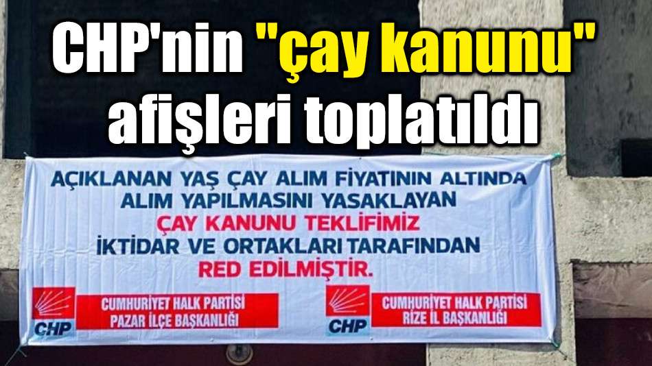 CHP’nin Rize’de astığı çay kanunuyla ilgili afişler toplatıldı. Bunun üzerine CHP Rize İl Başkanlığı afişleri il ve ilçe binalarına asmaya başladı.