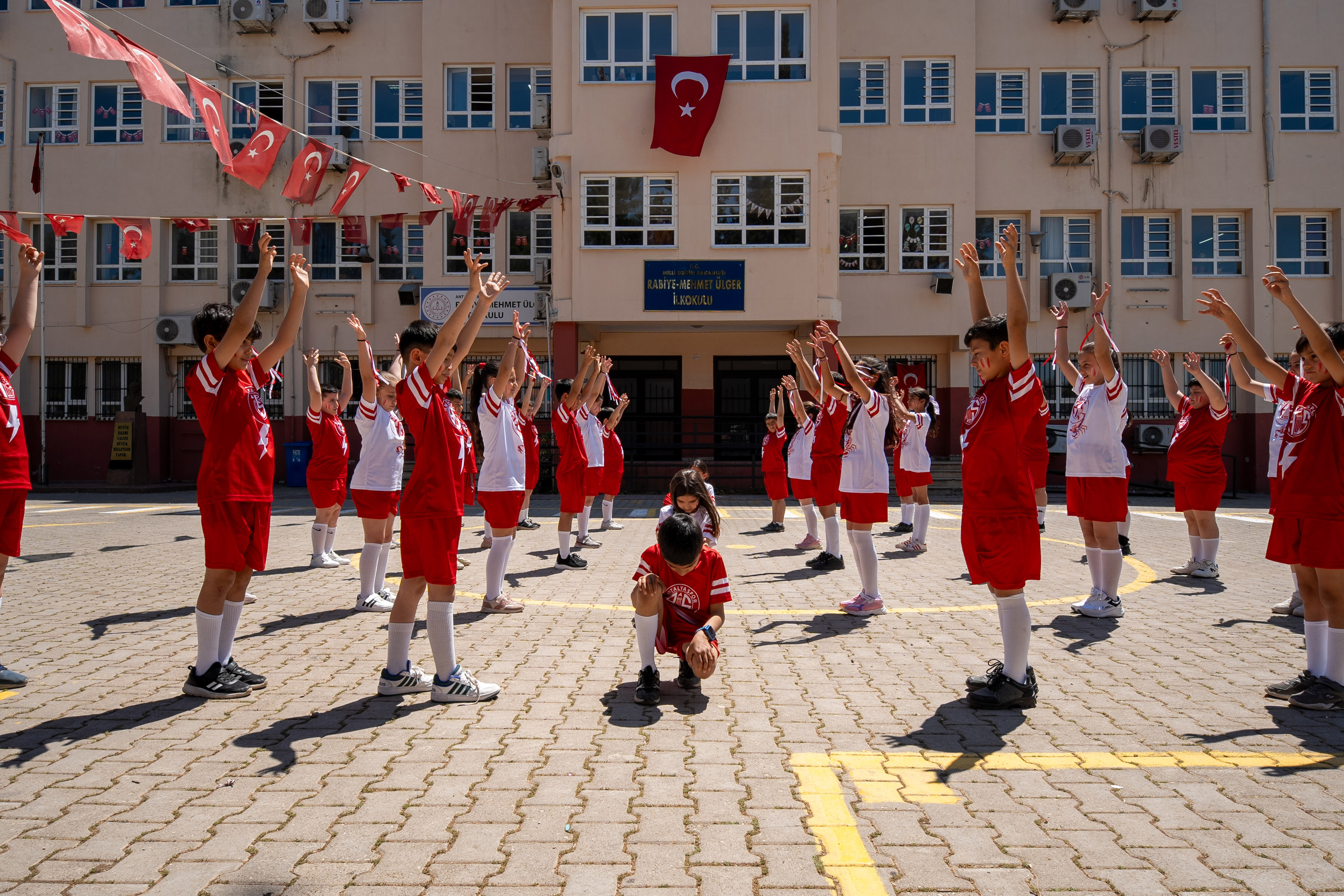 haberimizvar.net- Aksu ilçesine bağlı Çamköy Mahallesinde bulundan Rabiye- Mehmet Ülger İlkokulu 4/B Sınıfı öğrencileri, 23 Nisan Ulusal Egemenlik ve Çocuk Bayramı için özel bir gösteri hazırladı. Öğrenciler, sınıf öğretmenleri Erhan Aynalı liderliğinde hazırlandıkları Antalyaspor temalı 23 Nisan gösterisini okulun bahçesinde sergiledi. Öğrencilerin gösterisi, dron kamerasıyla da kaydedildi.