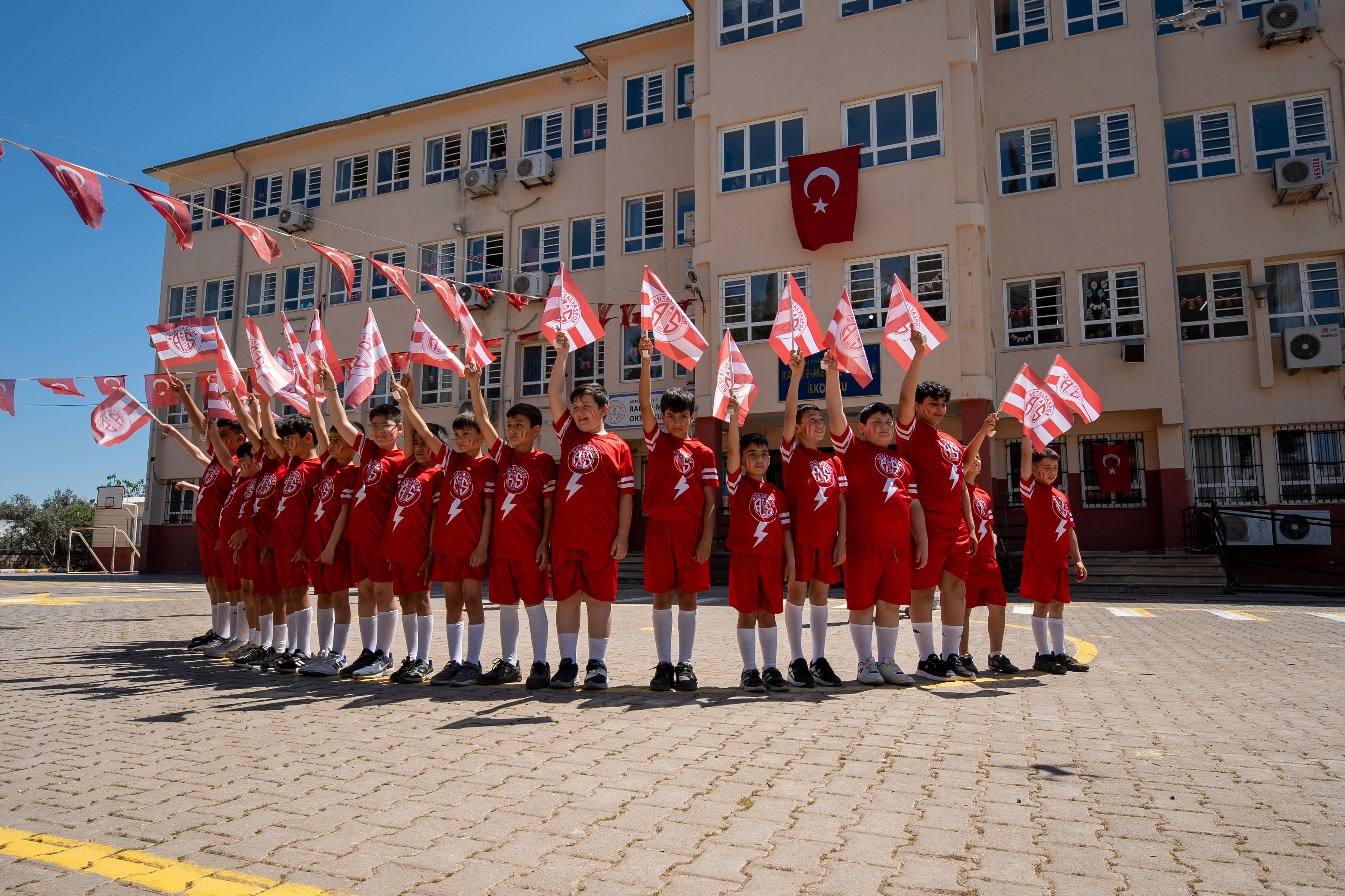 Antalya'nın Aksu ilçesinde 4'üncü sınıf öğrencileri, 23 Nisan için hazırladıkları Antalyaspor temalı gösteriyi sergiledi.