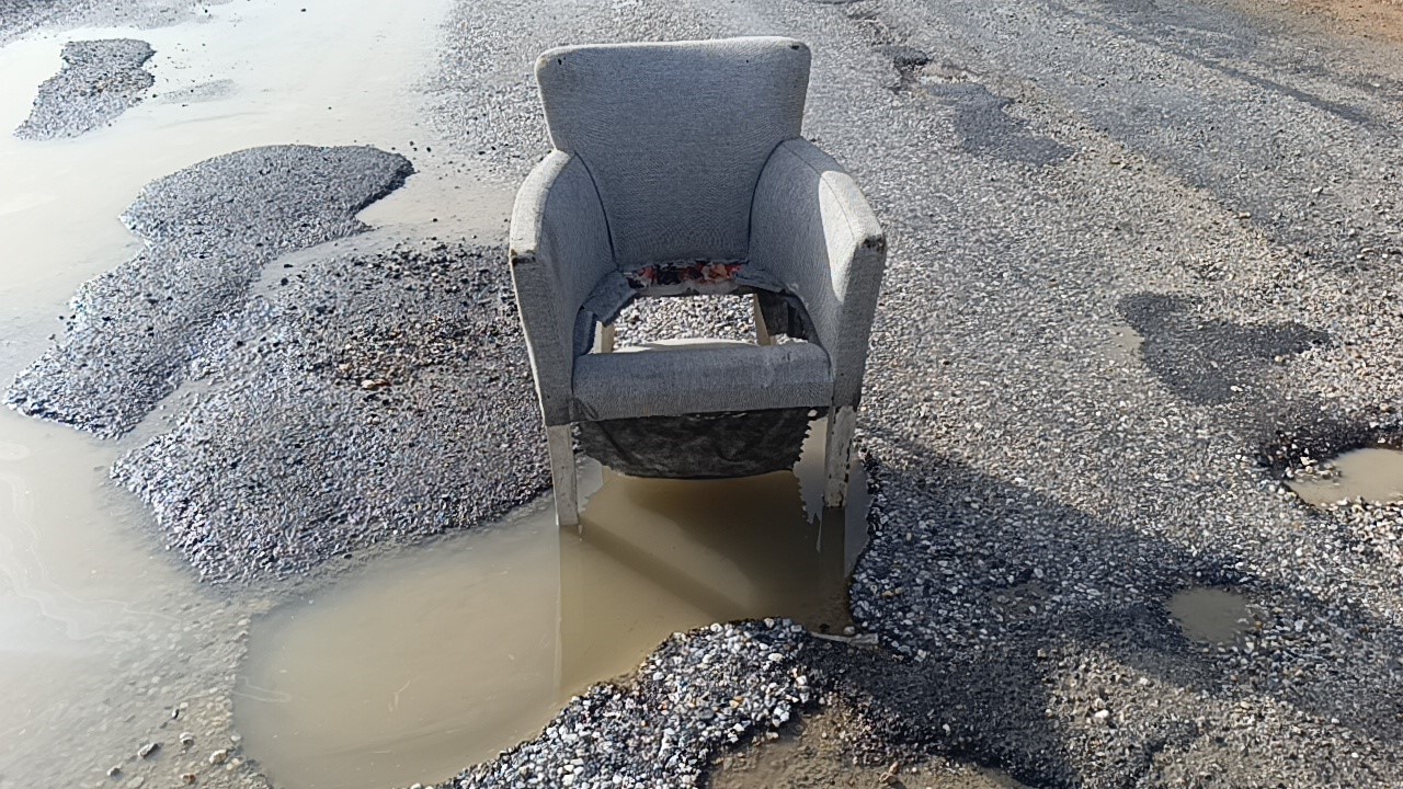 Antalya'nın Manavgat ilçesinde şiddetli yağışlar sonrası yolda oluşan çukurlar vatandaşlarca üzerine koltuk konularak kapatılmaya çalışıldı.