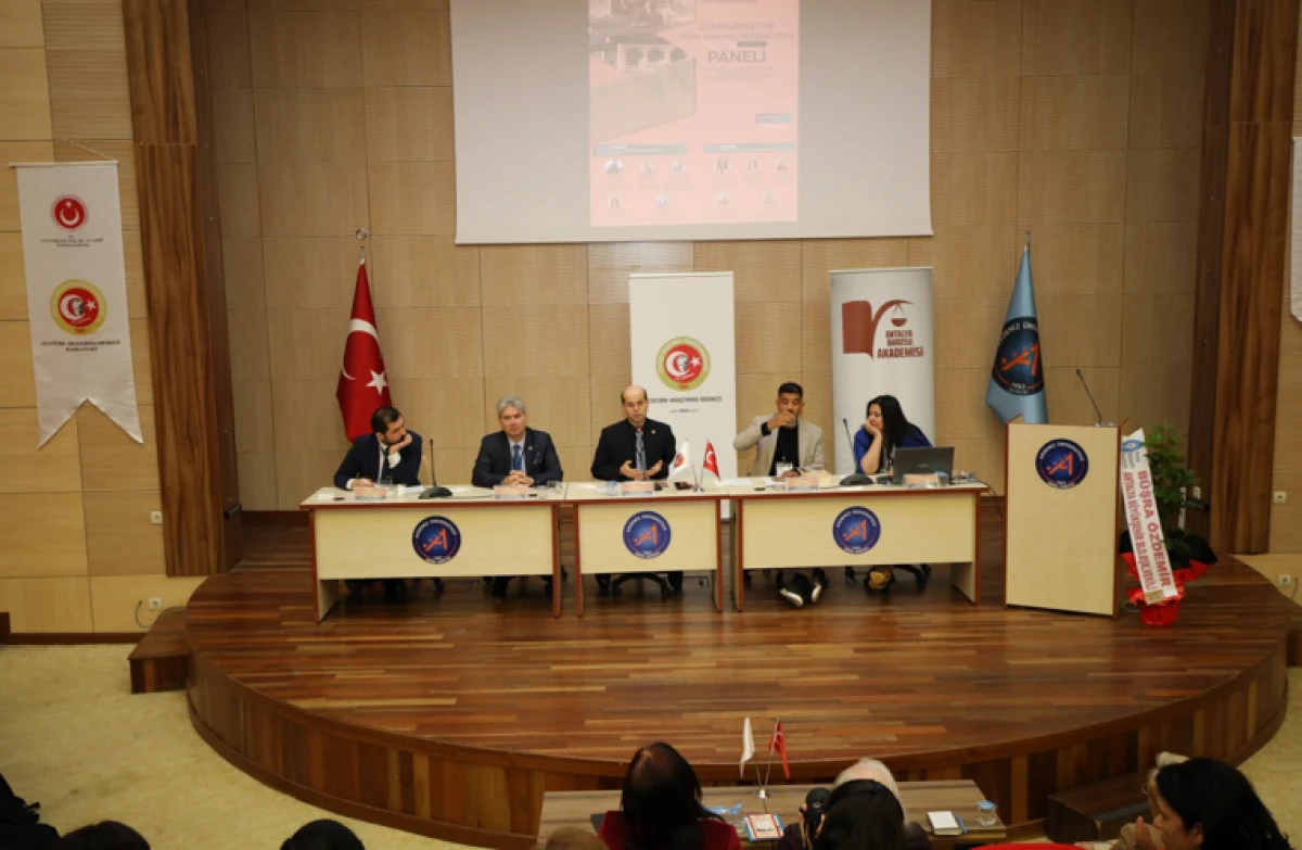 haberimizvar.net- Akdeniz Üniversitesi, Antalya Barosu ve Atatürk Araştırma Merkezi iş birliğiyle düzenlenen etkinlik Akdeniz Üniversitesi Hukuk Fakültesi Konferans Salonunda gerçekleştirildi. “Türk Kanunu Medenisi ve Cumhuriyet Sergisi” ile başlayan program daha sonra “ Cumhuriyet ve Türk Kanunu Medenisi’nin Normatif Temelleri” konulu panel ile devam etti.
