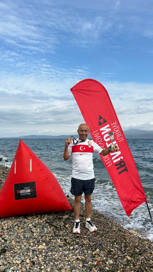 "Demir Adam" lakabıyla tanınan Bıdı, başarılarına bir yenisini daha ekleyerek dün Balıkesir’in Ayvalık ilçesinde düzenlenen 2025 Ayvalık Triatlonu Türkiye Kupası Finalinde de yarıştı. Yaklaşık 500 sporcunun katıldığı organizasyonda 75-79 yaş kategorisinde önce bin 500 metre yüzen Bıdı, ardından 40 kilometre pedal çevirdi, sonrasında 10 kilometre koyan ‘Demir Adam’ Türkiye şampiyonu oldu.