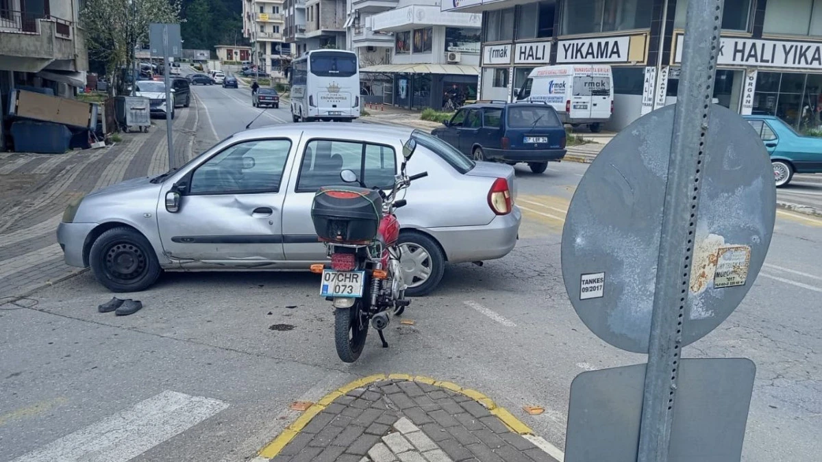 Antalya'nın Manavgat ilçesinde dönüş yasağına uymayarak manevra yapan otomobile, aynı istikamette seyir halindeki motosikletin çarpması sonucu motosiklette bulunan 2 kişi yaralandı.