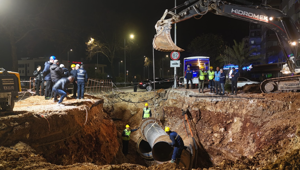 Antalya Büyükşehir Belediyesi Antalya Su ve Atıksu İdaresi (ASAT) Genel Müdürlüğü, Hürriyet Caddesi üzerinde yürütülen Katlı Kavşak çalışmaları kapsamında, Antalya’nın önemli içme suyu hatlarından biri olan Duraliler 1 Ana İsale Hattı’nda gerçekleştirilen deplase ve altyapı çalışmalarını 24 saat esasına dayalı yoğun bir çalışmasıyla tamamlandı.