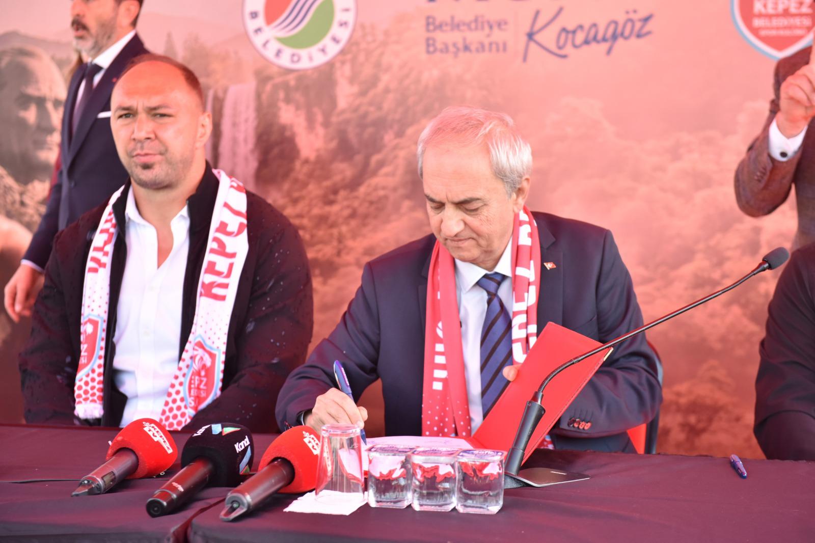 İmza töreninde konuşan Kepez Belediye Başkanı Mesut Kocagöz, ‘Er Meydanı’nın yiğitleri’ diyerek başladığı konuşmasında “Bugün sadece bir transferi değil, bir geleneğin, bir ruhun ve bir iddianın yeniden ayağa kalkışını konuşacağız. Kepez’de 12 yıl oldu bu gelenek biteli” dedi. Başpehlivanlığın kolay kazanılmadığına değinen Başkan Kocagöz, “Başpehlivanlık demek sırtı yere gelmemek demektir. Sadece buda değil; hem ahlakıyla, hem de gücüyle öne çıkmak demektir. İşte bunu yaşayan temsili isimde Ali Gürbüz’dür. Aramıza hoş geldin” diye konuştu.