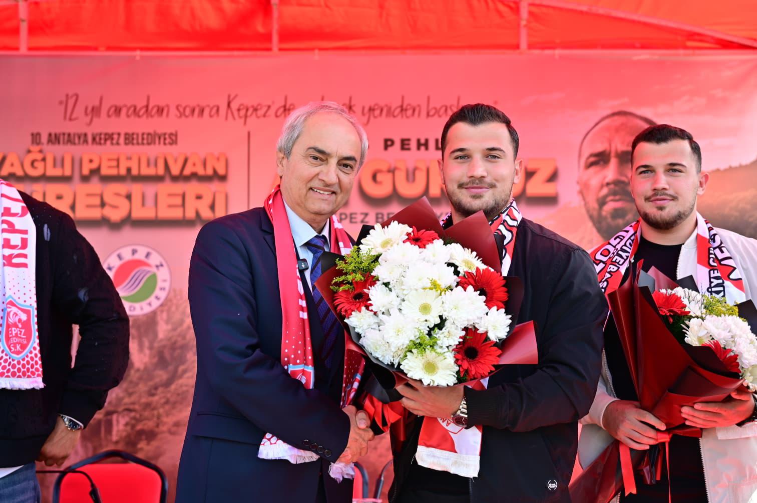 Kepez’in Başpehlivanı Ali Gürbüz de, Kepez de 12 yıldır güreş yapılmadığını hatırlatarak, “Mesut başkanımız sağ olsun. Kepez güreşlerini tekrardan canlandıracak. Kepez’de yağlı güreş ruhu, yağlı güreş kültürü her zaman var. Bu ruhu tekrardan canlandırdıkları için başkanımıza teşekkürlerimi sunuyorum. Ben ilk kemerimi Kepez Belediyesi güreşlerinde almıştım. İnşallah bu senede altın kemerin Kırkpınar’da ebedi sahibi olup, son bir başpehlivanlık yaşayıp, hem bu gururu Kepez’e hem de Antalya’ya yaşatmak istiyorum. Başkanımıza da bize verdiği destekten dolayı çok teşekkür ediyorum” diye konuştu.