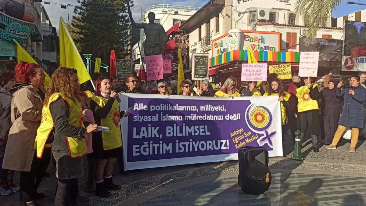 haberimizvar.net-ANTALYA Ekspres Gazetesi'nden Güven Güneş'in haberine göre, Eğitim-Sen Antalya Kadın Meclisi adına yapılan açıklamada, bu yeni dersin Türkiye’yi şeriata yaklaştırabileceği endişesi dile getirildi. Basın açıklamasını okuyan Eğitim-Sen Antalya Kadın Meclisi Şube Kadın Sekreteri Özlem Yavuz, Türk Aile Tarihi dersinin kadın hakları açısından risk taşıdığını ifade etti. Yeni eklenen dersin öğrencilere yeterince eleştirel düşünce kazandırmayacağını ve toplumsal cinsiyet eşitliği konusunda olumsuz etkiler yaratabileceğini ifade edildiği Yavuz, “Bu ders ile birlikte Türkiye şeriata yaklaşmıştır ama karanlığı kadınlar aydınlatacaktır” dedi.