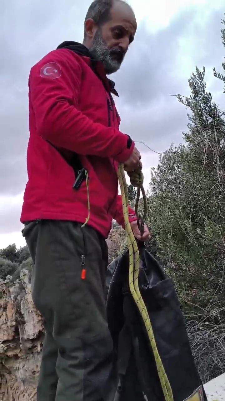 Falezlerde mahsur kalan kediyi film gibi operasyonla kurtardılar