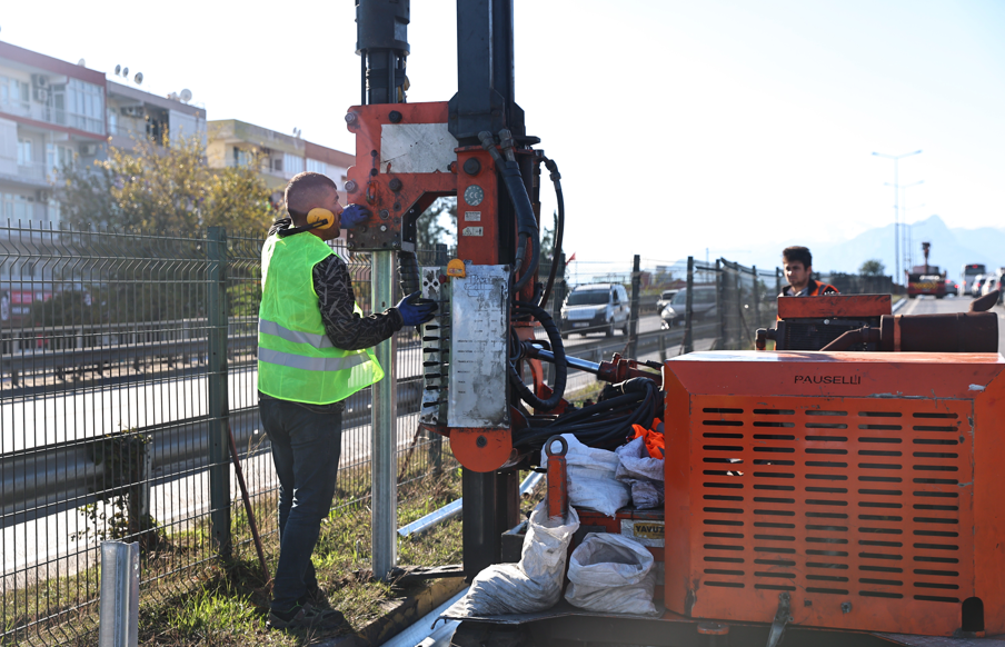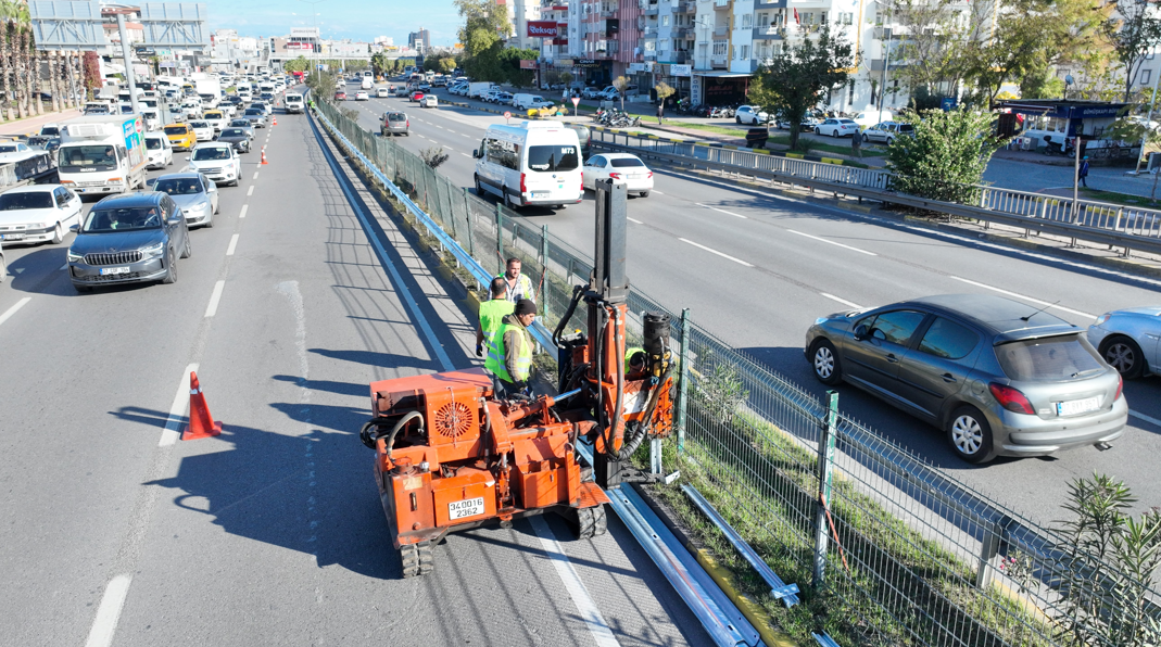 Antalya Büyükşehir Belediyesi, Gazi Bulvarı'nda trafik güvenliğini artırmak amacıyla otokorkuluk çalışması başlattı.