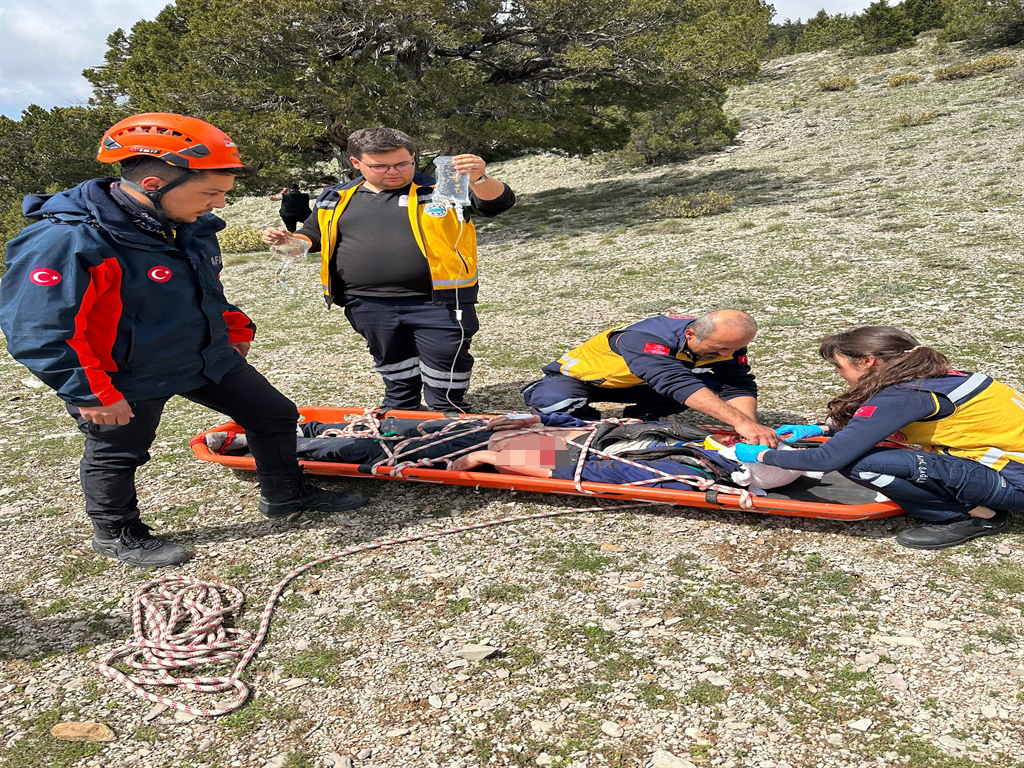 Antalya'nın Gazipaşa ilçesinde uçuruma düşerek mahsur kalan Okan Akbaş, ekiplerin ortak çalışmasıyla kurtarıldı.