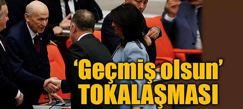 Bahçeli, Meclis Genel Kurulu’nda yerini aldıktan sonra HDP Eş Genel Başkanları Sezai Temelli ve Pervin Buldan yanına geldi. Bahçeli, kendisine geçmiş olsun diyen Buldan ve Temelli ile tokalaştı.