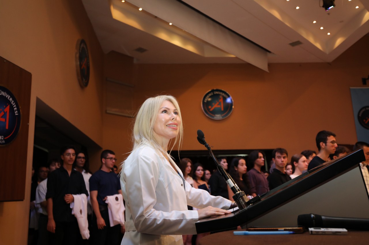 Törenin açılış konuşmasını yapan Akdeniz Üniversitesi Rektörü Prof. Dr. Özlenen Özkan, konuşmasında hekimliğin yalnızca bir meslek değil, insanlığın en kutsal görevlerinden biri olduğuna dikkat çekerek “Bugün bir unvan kazanmanın değil, insanlığa adanmış bir yolculuğa başlamanın onurunu yaşıyorsunuz. Giyeceğiniz beyaz önlük, bilime ve insanlığa hizmet etme kararlılığınızın, vicdanınızın ve meslek onurunuzun simgesidir.” dedi. Bilim, vicdan ve etik değerlerin hekimliğin ayrılmaz bir bütünü olduğunu vurgulayan Özkan, genç hekim adaylarına “Dünyada tek bir insan bile kaldığı, bir kalp daha atmaya devam ettiği sürece, bir hekimin bilgisine, ellerine ve vicdanına ihtiyaç olacaktır. Ve sizler, o emaneti devralan nesilsiniz. Siz, bilimin ışığıyla insanın kalbini birleştiren hekimlersiniz. Her kararınızda, her dokunuşunuzda, her tedavinizde, yaşamın kutsiyetine hizmet edeceksiniz.” dedi.