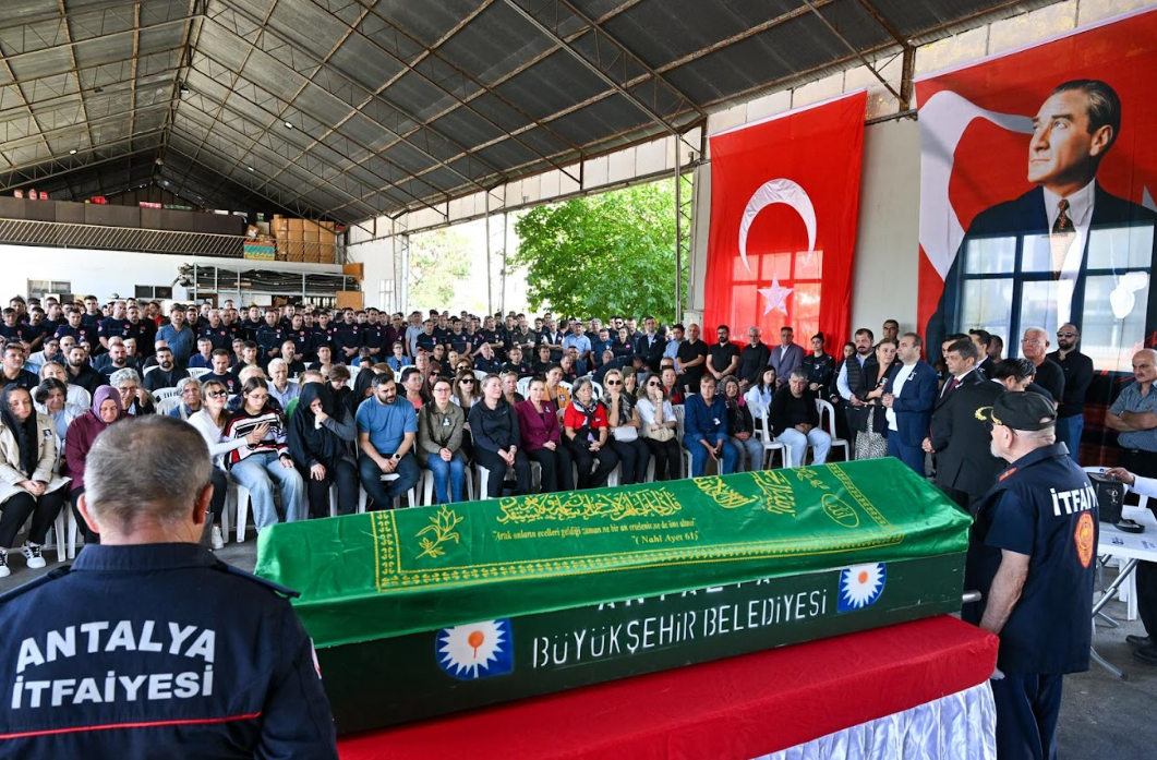 Levent Okutan’ın naaşı itfaiye sirenleriyle uzun yıllar emek verdiği Antalya Büyükşehir Belediyesi İtfaiye Daire Başkanlığı’nın bahçesinden gözyaşları ile uğurlandı.
