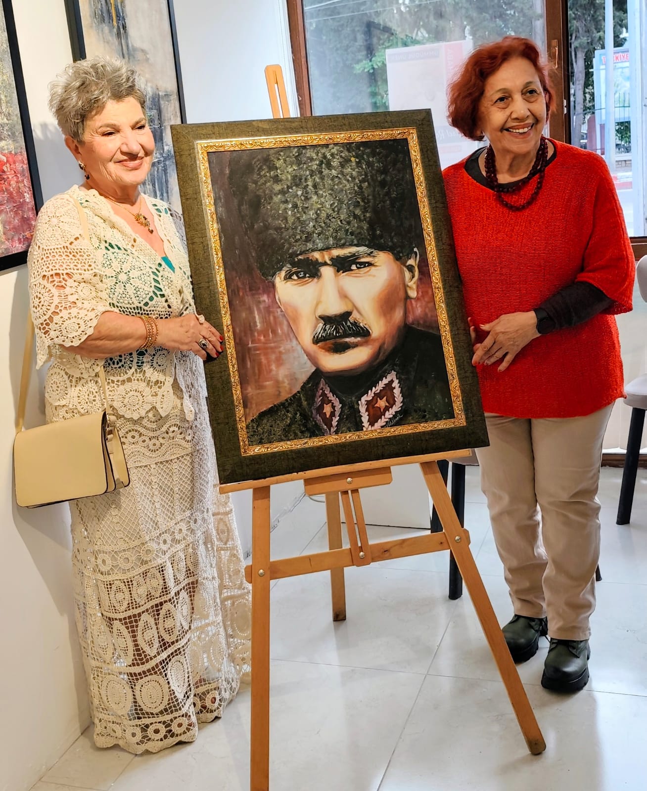 Eserlerinde Atatürk resimlerine ağırlık veren Antalyalı emekli resim öğretmeni Gül Ünek, 100'ün üzerinde sergi açarak adeta bir rekora imza attı.