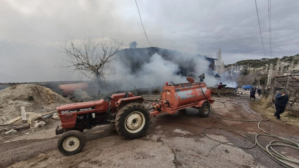 Antalya'nın Gündoğmuş ilçesinde bir evde çıkan yangında 3 büyükbaş hayvan telef olurken, dumandan etkilenen 1 kişi hastaneye götürüldü.