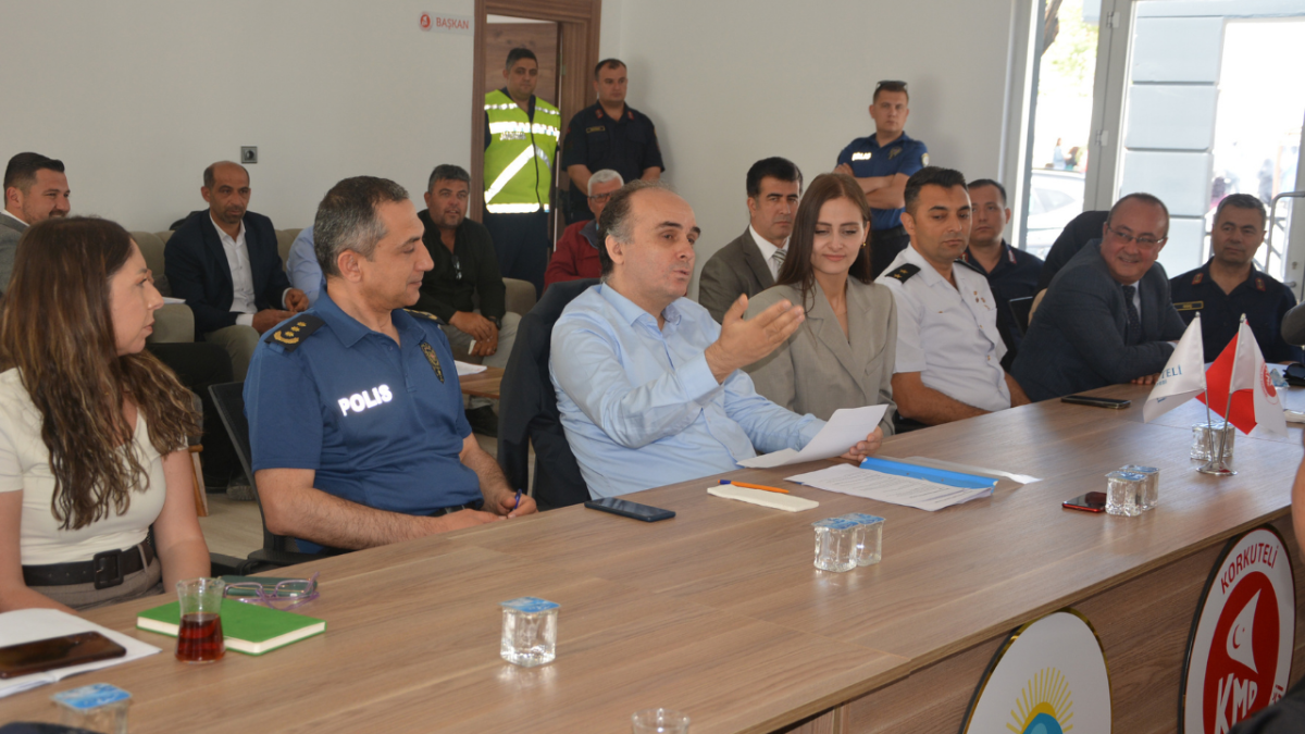 haberimizvar.net- Korkuteli'de İlçe Jandarma Komutanlığı tarafından düğün, nişan, asker eğlencesi gibi etkinliklerde silahla ateş edilmemesi ve can kayıplarının önlenmesi amacı ile Kaymakam Sezgin Üçüncü, Belediye Başkanı Saniye Caran, İlçe Jandarma Komutanı Vedat Kılınç, Emniyet Müdürü İrfan Ağlamaz, kurum müdürleri, siyasi parti temsilcileri ve mahalle muhtarlarının katılımı ile Güvenli Düğün Projesi sunumu yapıldı. Muhtarlar Derneği lokalinde gerçekleşen toplantı öncesi Kaymakam Sezgin Üçüncü ve beraberindeki kamu kurum müdürleri, yeni seçilen muhtarlarla tanıştı.