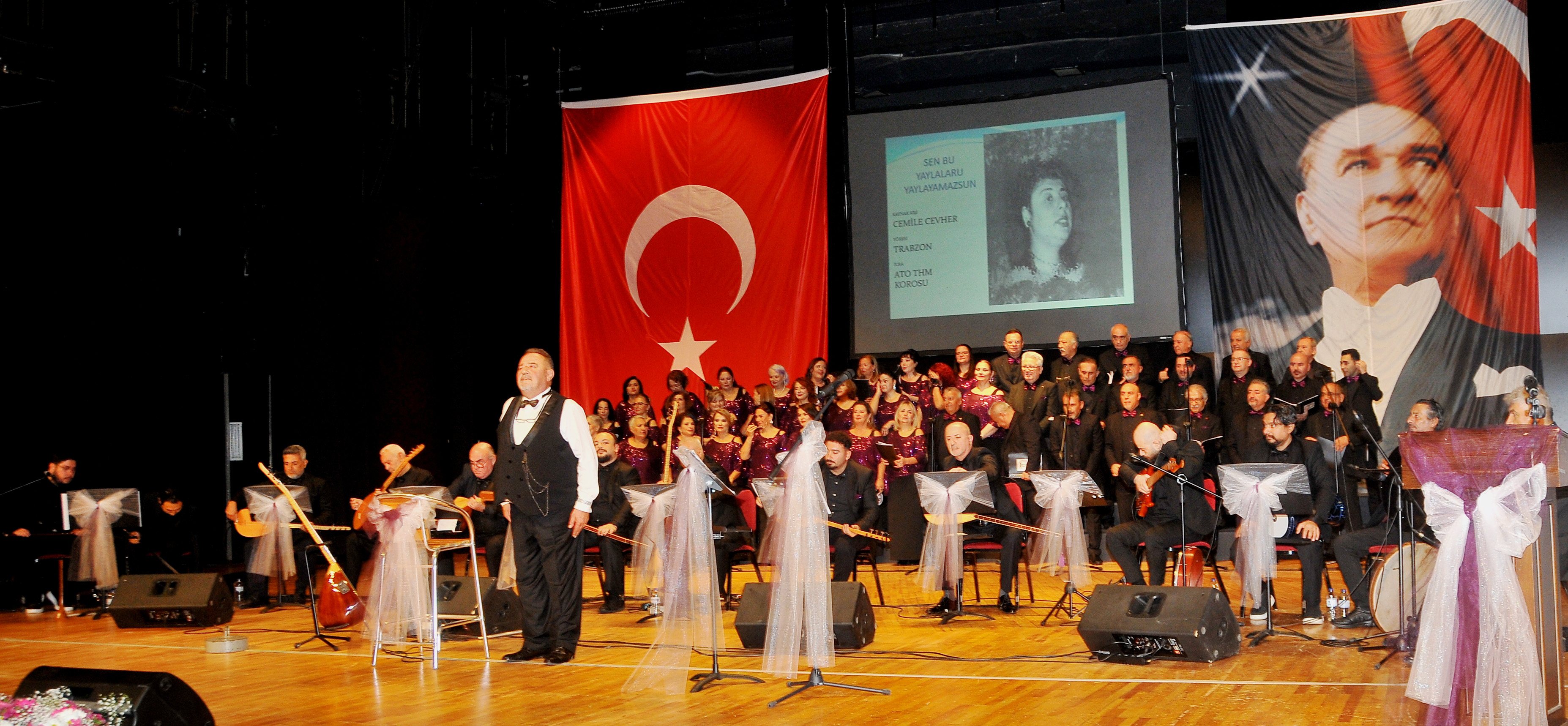 haberimizvar.net- Atatürk Kültür Merkezi (AKM) Aspendos Salonu'nda gerçekleşen 'Yeni Yıl Konseri'nde Antalya Tabip Odası " class="text-dark font-weight-bold" target="_blank"> Antalya Tabip Odası Türk Halk Müziği Korosu sahne aldı. Sunumunu Dr. Emine Şehitli'nin üstlendiği konserin orkestrasında Mustafa Madak (baş bağlama), Mahmut Usta (bağlama), Prof. Dr. Murt Göçer (bağlama), Dr. Serdar Çeliktaş (bağlama), Levent Daşcan (bağlama), Ali Eren Sevinç (bağlama), Doğuhan Karasu (şelpe bağlama), Tolga Yaşkaya (kabak kemane), Arif Can Coşar (nefesli saz), Emre Doğan (bas gitar), Mustafa Kemal Darıcı (Ritim/perküsyon), Levent Şekerli (ritim perküsyon) yer aldı.