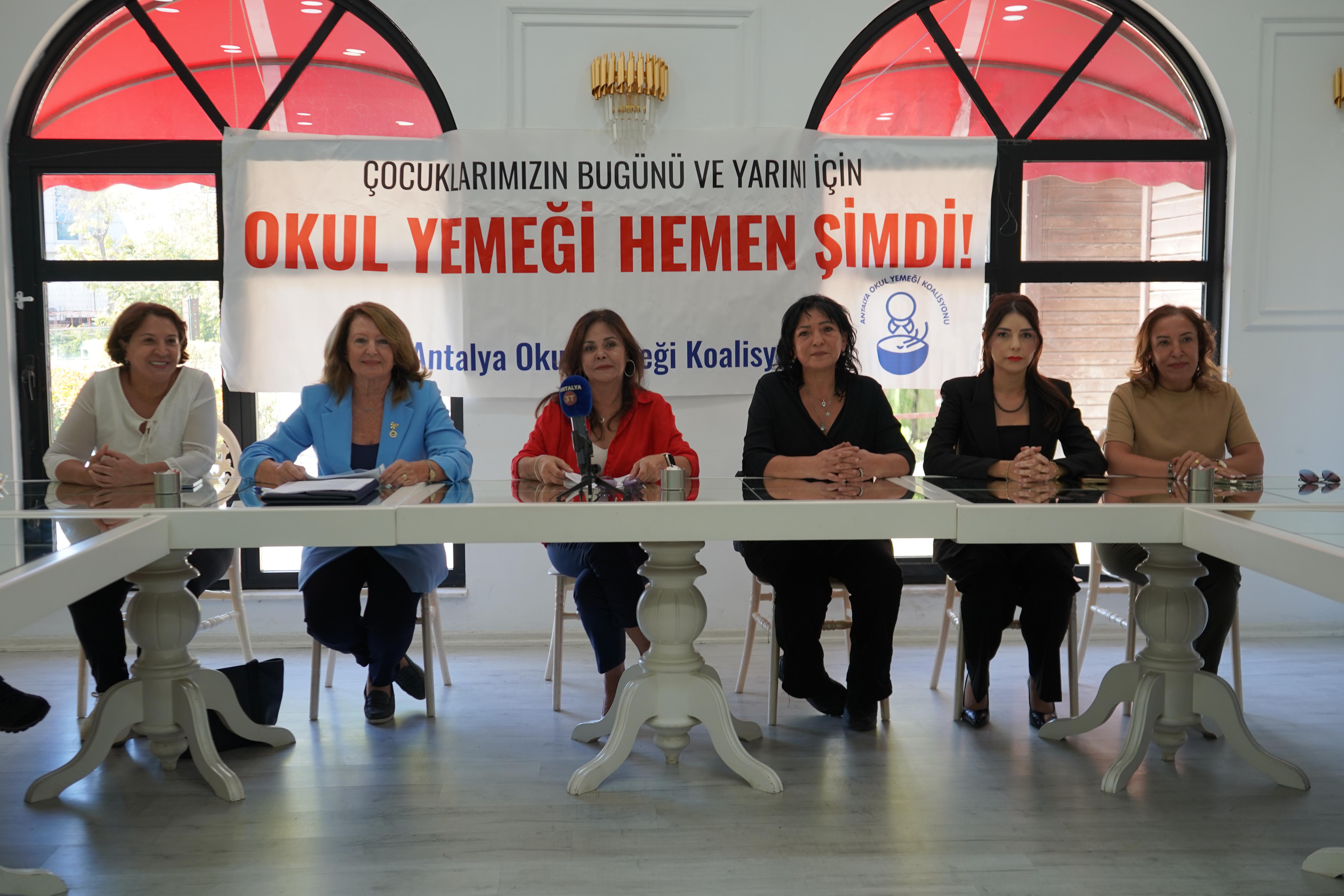 Antalya Okul Yemeği Koalisyonu, 'Her Çocuğa Bir Öğün Okul Yemeği Her Okula Temiz Su İçin' başlıklı basın toplantısı düzenledi. Koalisyon adına konuşan Veli-Der Antalya Şube Başkanı Tülin Koç, "Okul yemeği kamusal bir hak, politik bir sorumluluktur. Bu buluşma bir farkındalık etkinliği değil çocukların geleceğini koruma, sosyal devletin sorumluluğunu hatırlatma ve politik iradeyi göreve çağırma eylemidir" dedi.