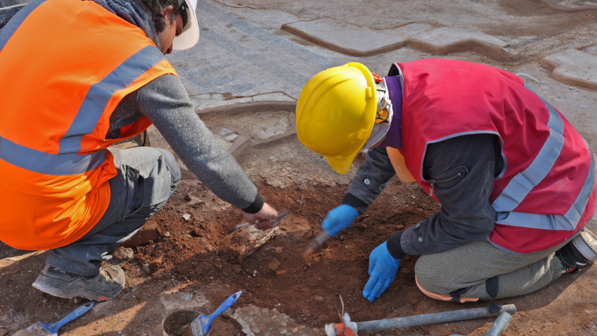 Antalya Büyükşehir Belediyesi tarafından yapımı süren “Hıdırlık Kulesi Çevresi Arkeolojik Kazı ve Seyir Terası Projesi” hızla ilerlerken, arkeolojik kazı çalışmasında yeni buluntulara rastlandı, Geç Roma Dönemine ait olduğu düşünülen yazıtlı mozaik gün yüzüne çıkarıldı.