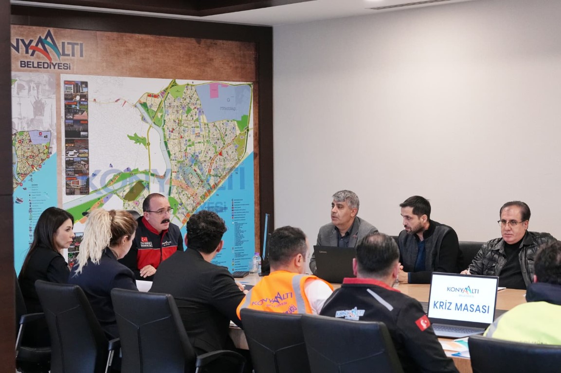 Antalya genelinde etkisini gösteren yoğun yağış ve fırtına dolayısıyla oluşturulan Konyaaltı Belediyesi Kriz Masası, Başkan Cem Kotan başkanlığında toplandı. Kotan, “Uzun yıllardır görülmeyen bir sel felaketiyle karşı karşıyayız. Birkaç gündür gece gündüz demeden tüm birimlerimizle sahadayız” dedi.