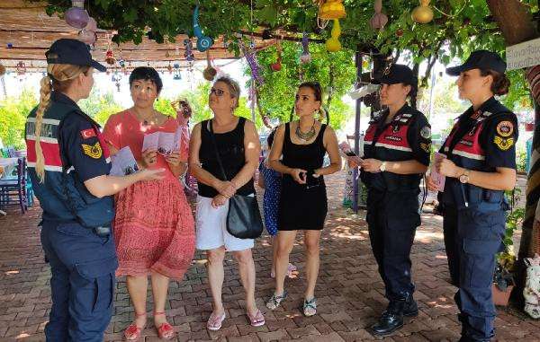 Jandarma ekipleri, kadın turist ve kadın turizm çalışanlarına KADES'in önemini ve faydalarını da detaylıca anlattı.