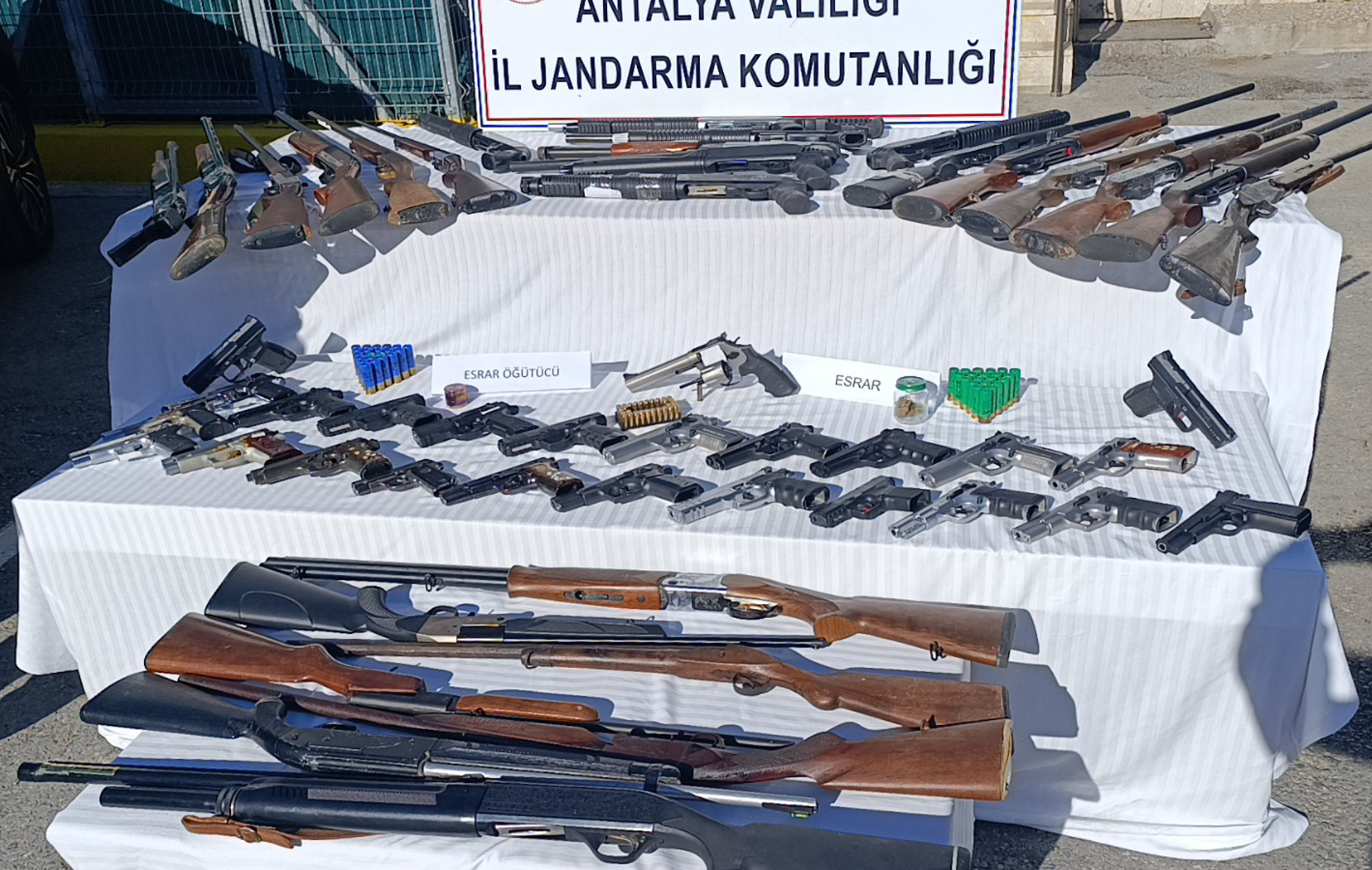 Antalya'nın Manavgat ilçesinde jandarma tarafından gerçekleştirilen silah kaçakçılığı operasyonunda 30 tabanca, 27 av tüfeği ve bunlara ait çok sayıda mühimmat ele geçirildi.