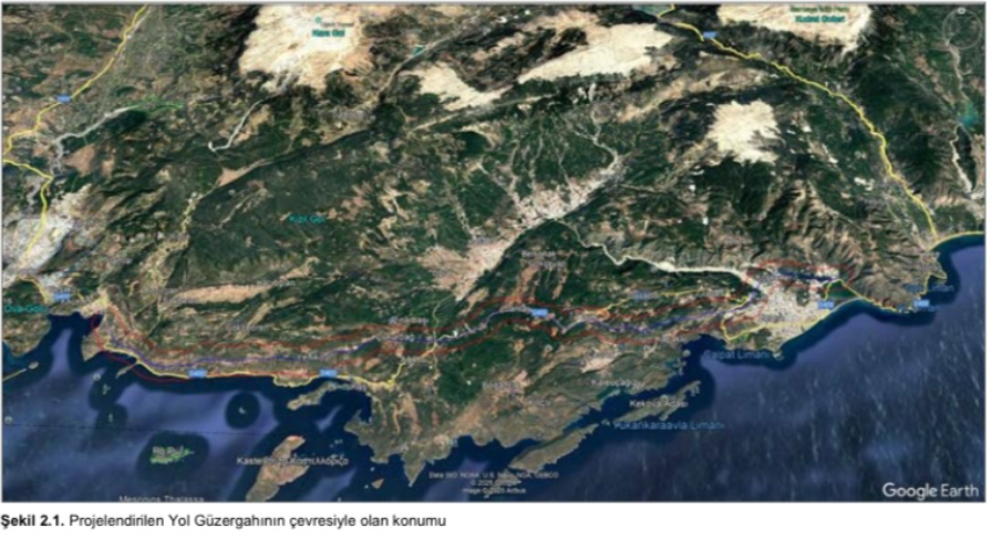 Son yıllarda Antalya’nın batı ilçelerinin gündeminde olan Finike, Demre, Kaş, Kalkan bölünmüş yol projesi, büyük bir yıkım yaratacağı gerekçesiyle yöre halkının tepkisini çekiyordu. Korunan alanlar başta olmak üzere, orman arazileri ve tarım arazilerinden geçen yol güzergahının bir bölümü mevcut yolun olduğu alandan geçiyor. İddianamede imar planı değişikliği ile rant yaratmaya konu olan arazide yeni yol projesinin mevcut yolla kesiştiği bölgede yer alıyor.