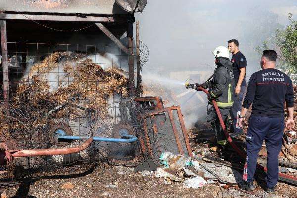 Antalya'da prefabrik evin altında yapılan kaynağın kıvılcımı saman balyalarını tutuşturdu. İtfaiye ekiplerinin müdahalesi ile yangın söndürülürken saman balyaları küle döndü.
