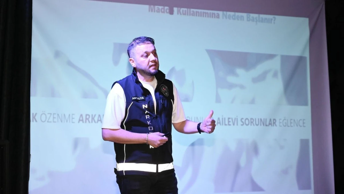 Antalya Narkotik Suçlarla Mücadele Şube Müdürlüğü’nden Narko Rehber Polis Memurları Arif Erdem ve Ayşe Kalpakçı tarafından verilen seminerde, uyuşturucu maddenin tanımı, uyuşturucuya başlama nedenleri, çocukların uyuşturucudan korunması, madde bağımlılığında ailenin görevleri ve yapması gerekenler, bağımlılık döngüsü, tedavi yöntemleri, uyuşturucu ile mücadele yönetmeleri gibi konularda katılımcılara bilgi verildi.