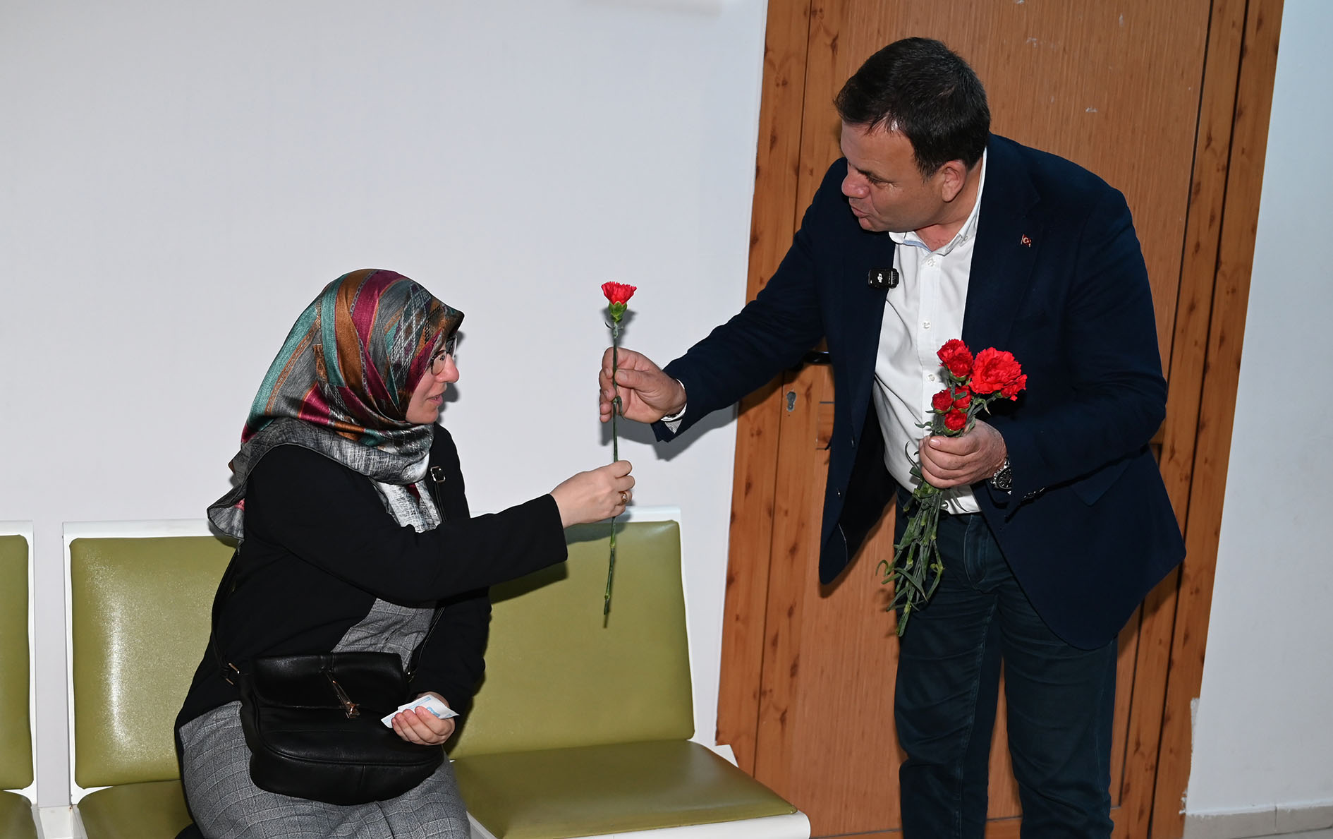 Hastaneye muayene için gelen kadınların da günlerini kutlayan Başkan Yardımcısı Semih Top, vatandaşlara hem geçmiş olsun dileklerini iletti hem de isteklerini dinledi.