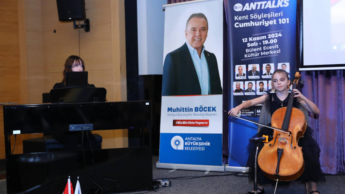haberimizvar.net-  Antalya Büyükşehir Belediyesi Kent Tarihi ve Tanıtım Dairesi Başkanlığı tarafından düzenlenen “Kent Söyleşileri Cumhuriyet 101” başlıklı etkinlik birbirinden değerli konuşmacılara ev sahipliği yaptı. Bülent Ecevit Kültür Merkezi’nde düzenlenen etkinlik Harmoni Talks Kurucusu Erdem Arslan’ın sunumu ile başladı ve İstanbul Planlama Ajansı Marmara Bölge Koordinatörü Cem Kılıç’ın açılış konuşmasıyla devam etti. Açılış konuşmalarından sonra sahneye çıkan Çellist Melisa Yılmaz da mini bir konser verdi.