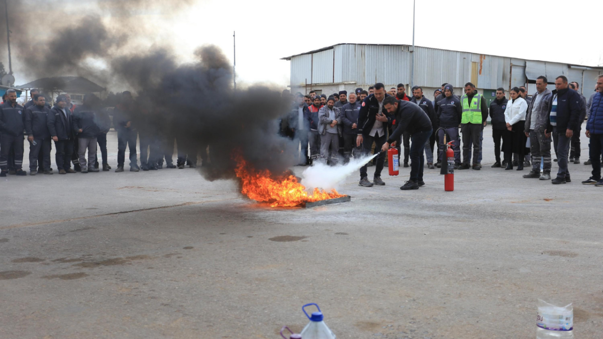 Belediye’nin Fevzi Çakmak Mahallesi’ndeki şantiye alanında, itfaiyenin görevleri, yangın nedenleri, doğru ihbar verme teknikleri, yangın anında stres yönetimi ve yangın söndürme yöntemleri gibi konularda bilgilendirmeler yapıldı. Yangınların genellikle bilgisizlik, dikkatsizlik, tedbirsizlik ve kazalardan kaynaklandığı vurgulandı. Teorik eğitimin ardından, şantiye alanında uygulamalı yangın söndürme eğitimi gerçekleştirildi.