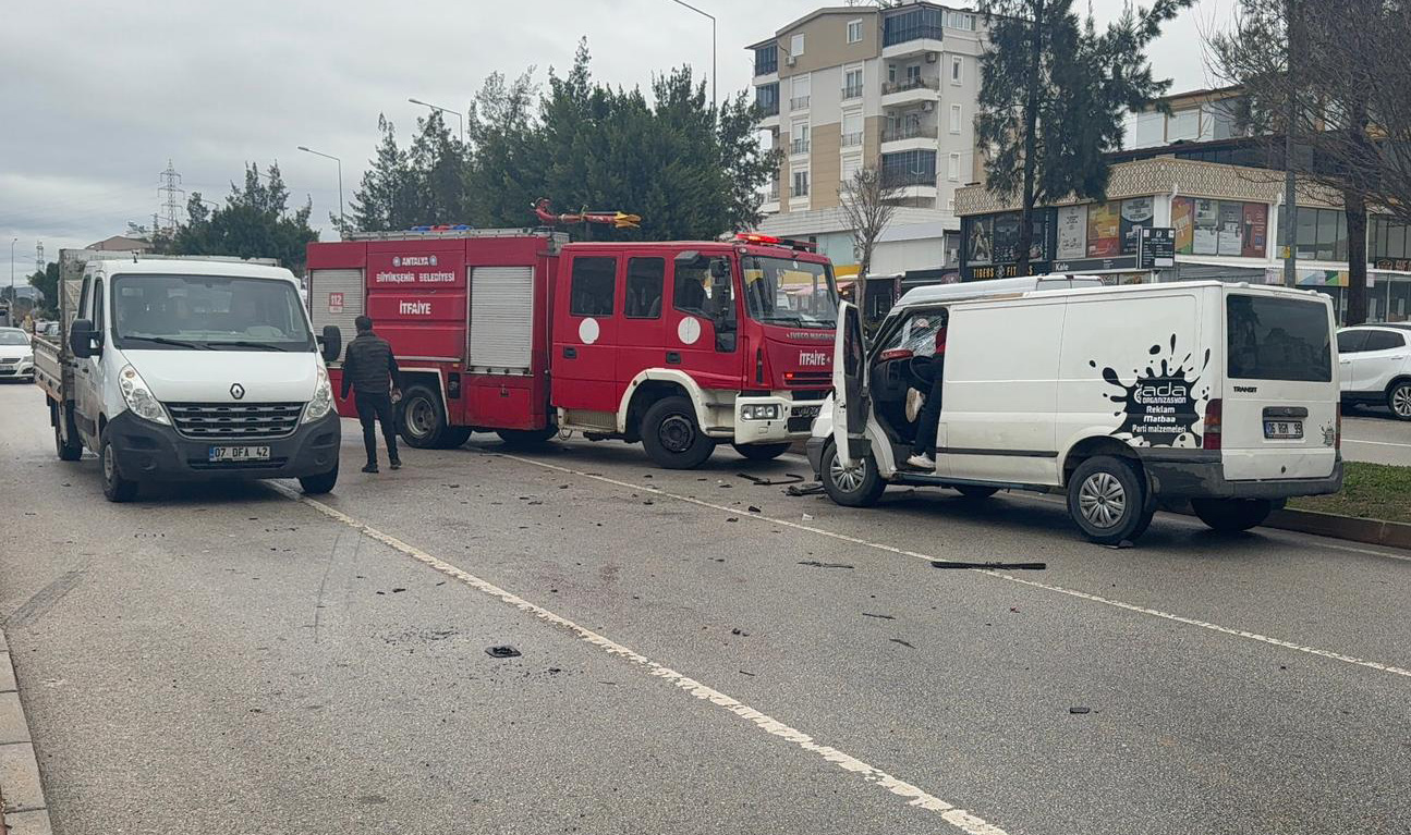 Antalya'da kamyonet ile çarpışan hafif ticari araçta sıkışan anne ile 9-10 yaşlarındaki kızı, itfaiye ekibi tarafından çıkarıldı. Kazada kamyonet sürücüsü de kolundan yaralandı.
