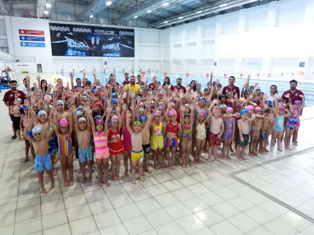 Kepez Belediyesi Spor Kulübü’nün yaz spor okullarında yüzme branşını tercih eden 2 bin öğrenci, Adnan Menderes Tam Olimpik Yüzme Havuzunda kulaç atmayı öğreniyor.