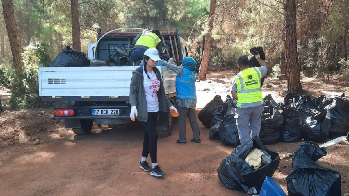 Kepez Belediyesi Temizlik İşleri Müdürlüğü ekipleri, gençlerin çevreye duyarlılığını artırmak, sürdürülebilir çevre bilincini güçlendirmek ve ormanların korunmasına yönelik farkındalık oluşturmak amacıyla etkinliğe aktif olarak katıldı. Gençlerle birlikte ormanlık alandaki çöpleri toplayan Kepez Belediyesi ekipleri, koltuk, halı gibi büyük ve ağır atıkları da kamyonlara taşıdı. Halı, kilim, koltuk, kağıt, plastik ve cam şişe gibi çeşitli atıkların toplandığı çalışmanın sonunda, ormanlık alan iki kamyon dolusu çöpten temizlendi.