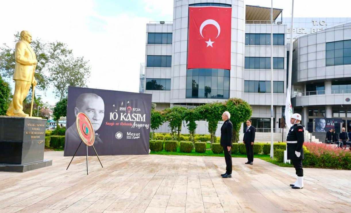 Törende konuşan Başkan Mesut Kocagöz, Cumhuriyetimizin kurucusu Gazi Mustafa Kemal Atatürk’ü ebediyete intikalinin 87. Yıl dönümünde saygı, rahmet ve özlemle anıyoruz. Atatürk, yalnızca bir lider değil, bir milletin yeniden doğuşunun simgesidir. Onun gösterdiği aydınlık yolda yürümek, bizlere düşen en büyük sorumluluktur” dedi.