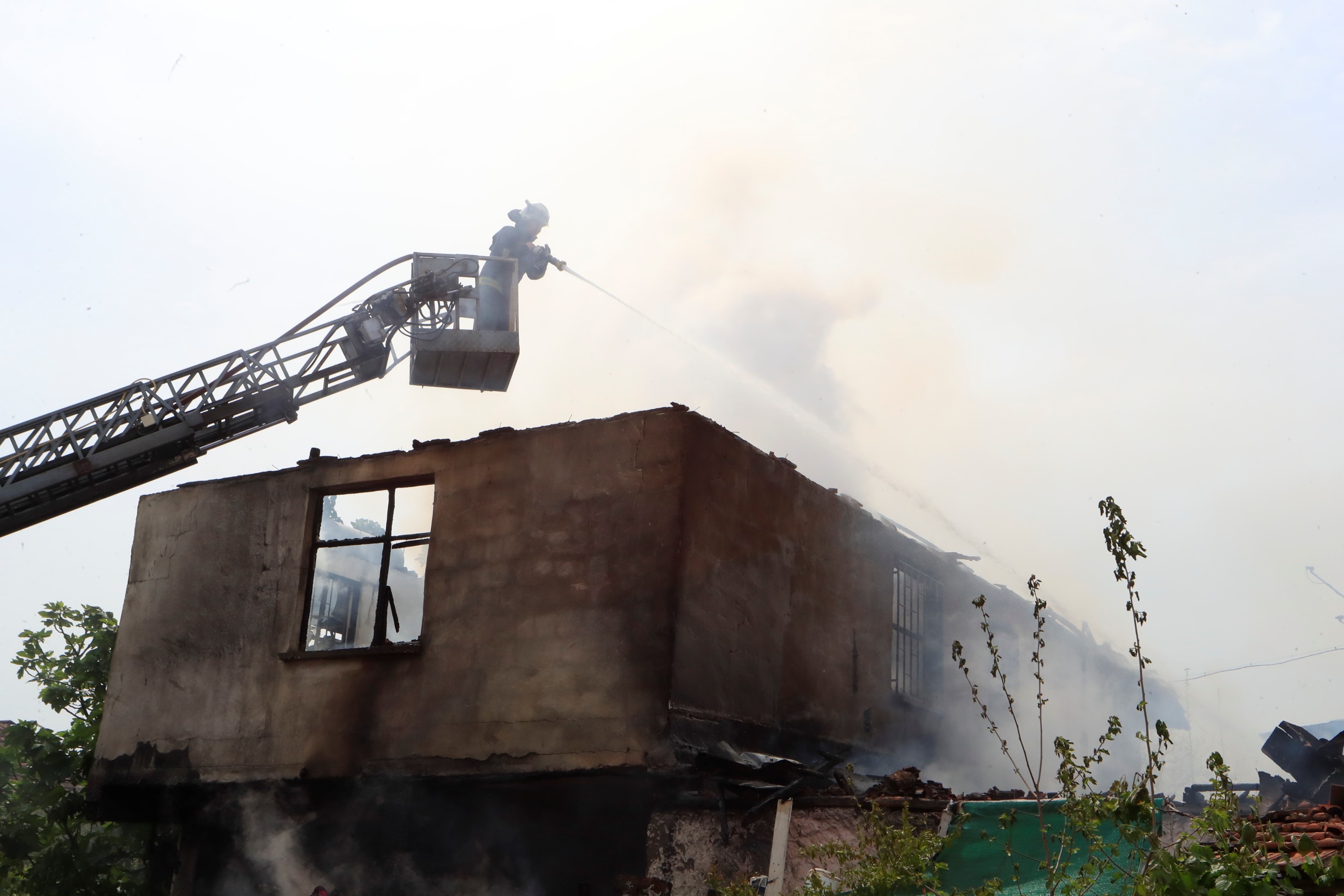 Antalya'da 2 katlı gecekondu da çıkan yangın bitişiğindeki eve sıçradı. Yangın anında gecekondu da bulunan 10 ve 7 yaşlarında ki yabancı uyruklu 2 çocuk mahalle sakinleri tarafından evden çıkartıldı.