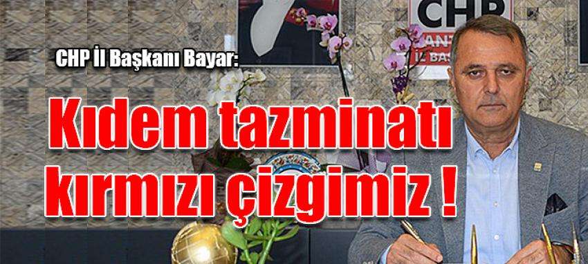 İktidara, “Buradan kendilerine hatırlatalım Kıdem tazminatı, işçinin emekçinin güvencesidir!” diyen Bayar şöyle devam etti; “Kıdem tazminatı emekçinin işverene karşı korunağıdır! Kırmızı çizgisidir! Kıdem tazminatı olmayan işçinin, iş güvencesi olamaz! AKP iktidarı yıllardan beri kıdem tazminatını ortadan kaldırmak için çeşitli yolları deniyor. Yılları bulan toplumsal mücadelenin bir ürünü olan kıdem tazminatı konusunda, emekçilerin işçilerin sonuna kadar yanında olacağız. İşçilere vahşi sömürü koşullarını dayatmaya çalışan AKP iktidarının bezirgan politikalarına karşı emekçilerimizle birlikte sonuna kadar direneceğiz! Cumhuriyet Halk Partisi olarak; kıdem tazminatının fona devredilmesine karşıyız. Kıdem tazminatının tamamlayıcı emeklilik sistemi adı altında yok edilmesine karşıyız.”