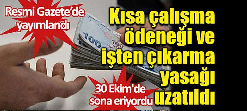 Kısa çalışma ödeneği ve işten çıkarma yasağı 2 ay daha uzatıldı. Resmi Gazete'de yayımlanan Cumhurbaşkanı kararıyla işten çıkarma yasağı 17 Kasım'dan itibaren 2 ay daha uzatıldı. Kısa çalışma ödeneği uygulamasında ise daha önce uzatılan süre 30 Ekim'de sona eriyordu.