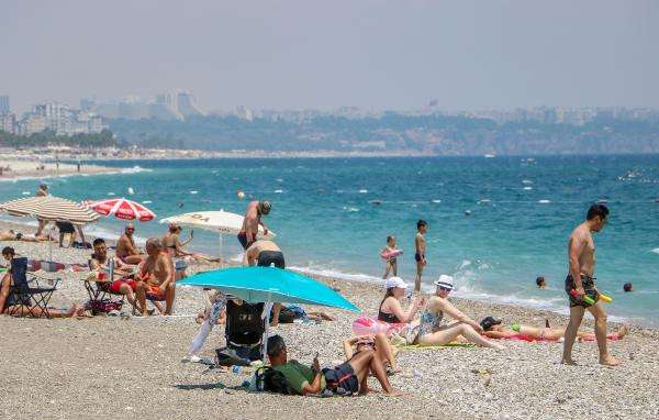 Kısıtlamadan muaf olan turistler ise güneşli ve sıcak havayı fırsat bilerek Konyaaltı Sahili'nde denizin tadını çıkarttı. Hava sıcaklığının 25 dereceye ulaştığı kentte sahile gelen bazı turistler kumların üzerinde güneşlenirken, bazıları ise rüzgara aldırış etmeden denize girdi. Nem oranının yüzde 80'e kadar ulaşması nedeniyle kentin siluetini oluşturan falezler, nem bulutu arasında kayboldu.