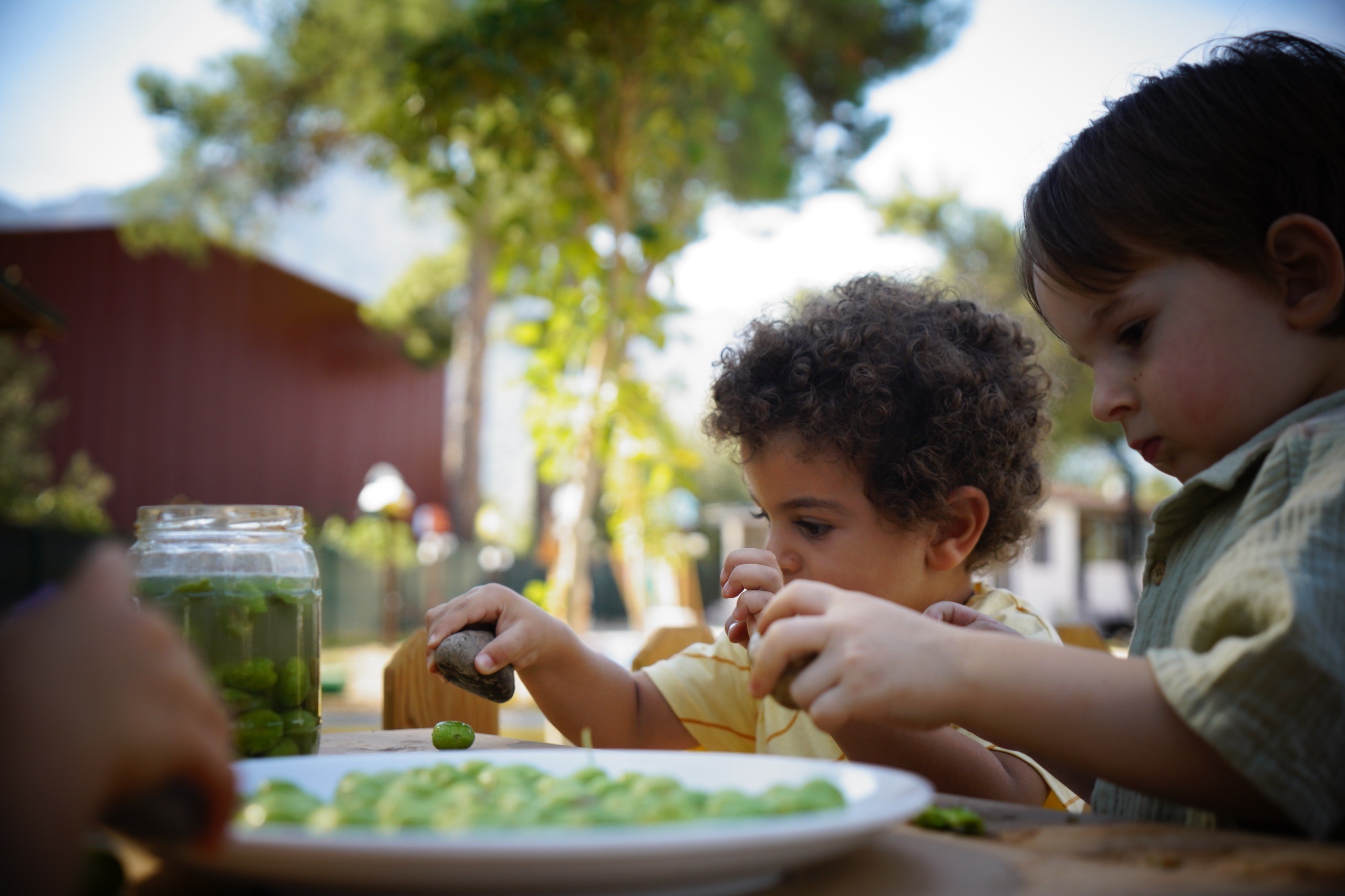 haberimizvar.net- Konyaaltı Belediyesi’nin hizmete açtığı 5’inci kreş olan Doğa Çocuk Enstitüsü’nde eğitim gören minikler, keyifli bir etkinliğe imza attı. Öğrenciler, Konyaaltı Belediyesi Park ve Bahçeler Müdürlüğü ekiplerinin zeytin ağaçlarından topladığı zeytinleri işledi. Zeytinleri ilk olarak taş yardımıyla kıran minik öğrenciler, kırılan zeytinleri önce tabaklara ardından da etkinlik için hazırlanan kavanozlara doldurdu.
