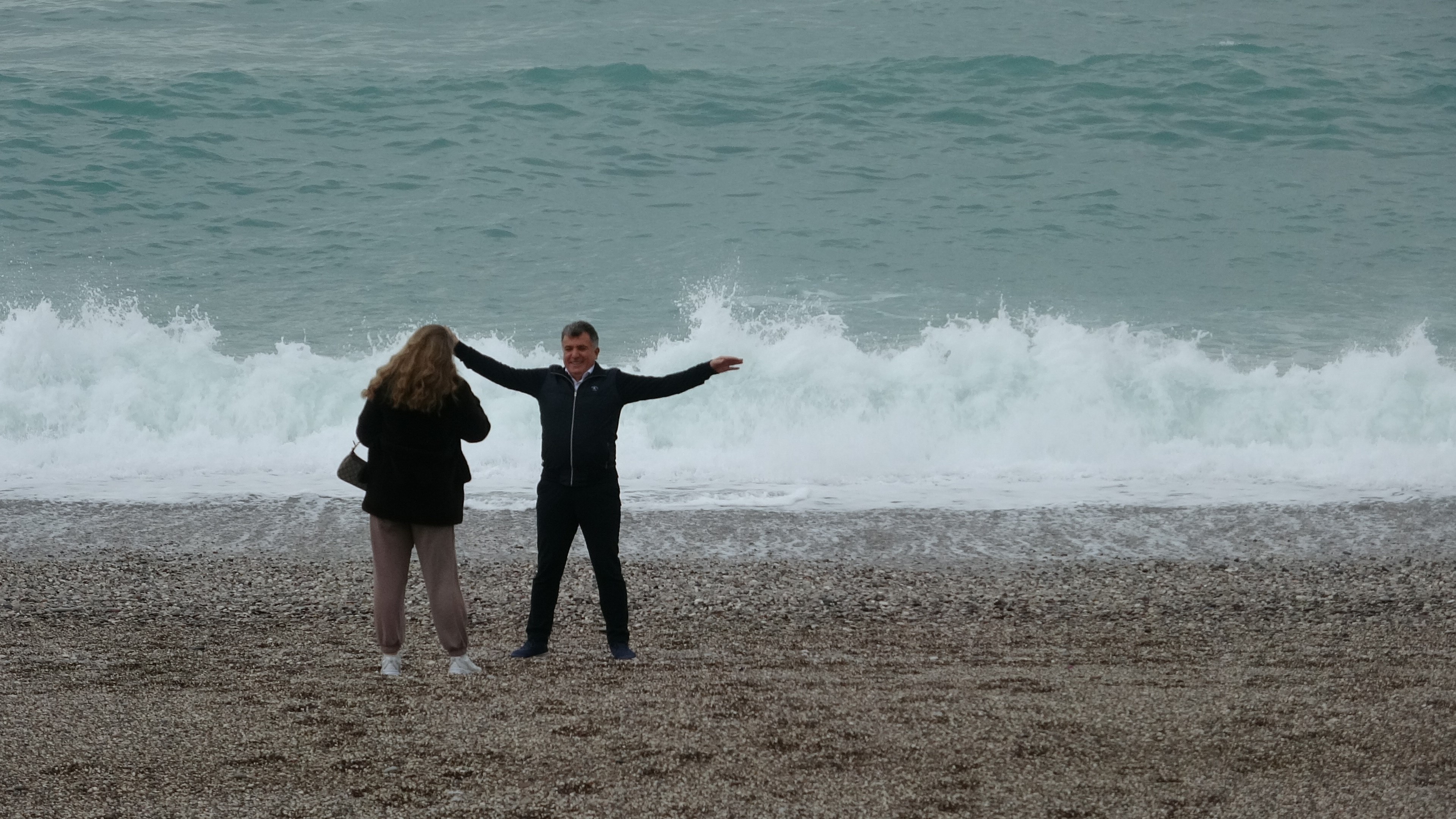 Sahilde dalgaları hayranlıkla izleyen bir İranlı turist, manzarayı çok beğendiğini belirterek, " Antalya çok güzel bir memleket. İnsanları ve denizi çok güzel. Deniz çok dalgalı maşallah" dedi.
