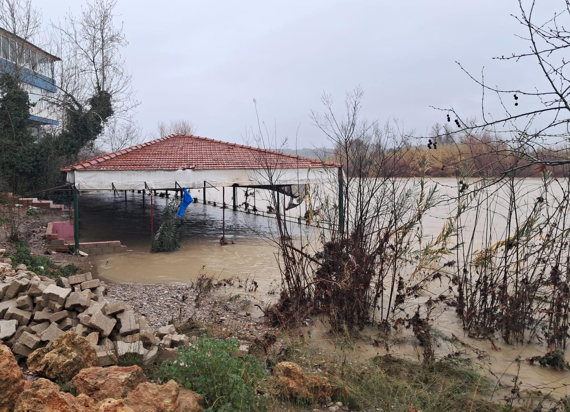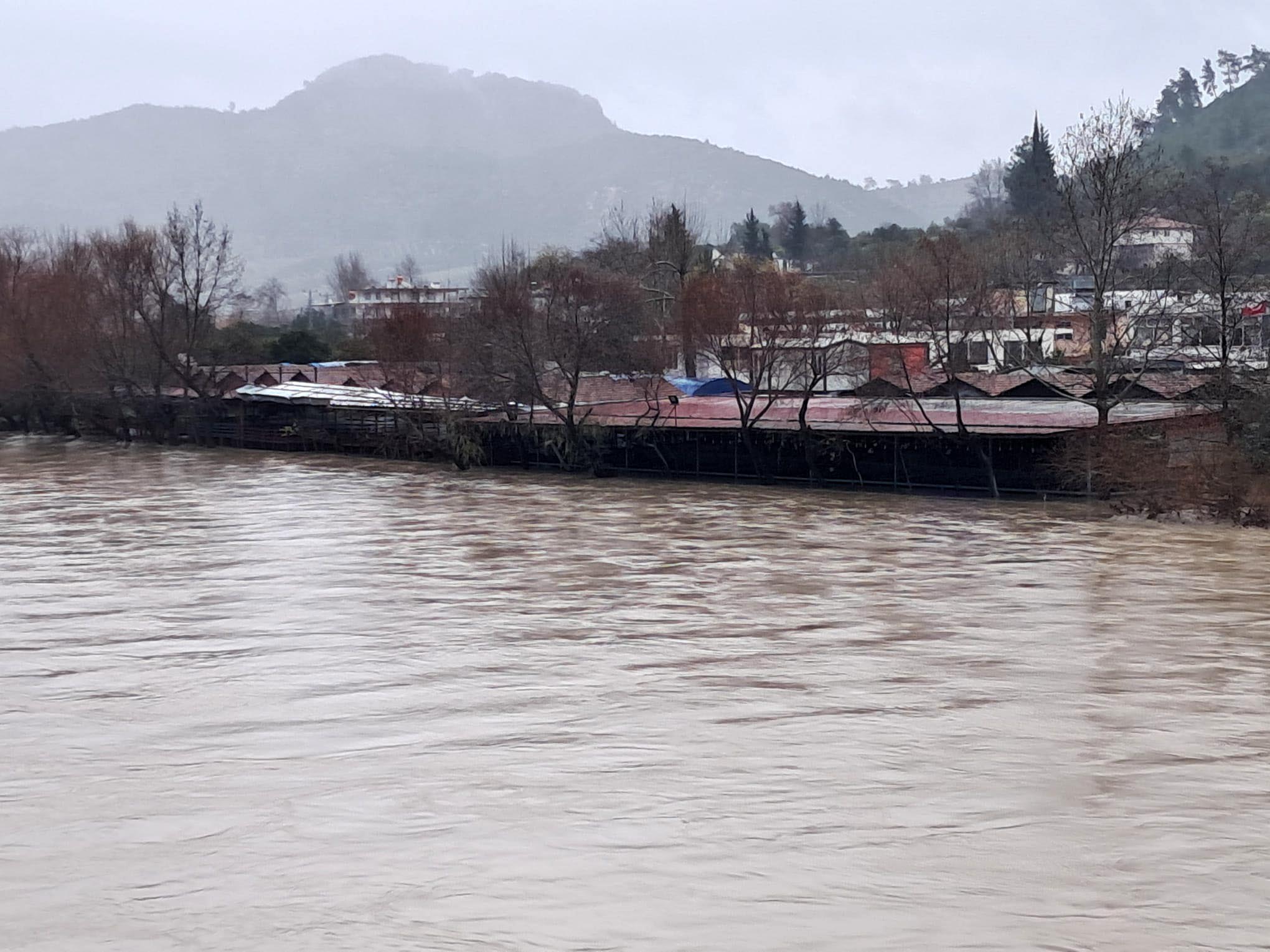 Antalya'nın Serik ilçesinde 3 gündür etkili olan yağmurlar nedeniyle Köprüçayı Irmağı'nda su seviyesi yükseldi. Irmak kıyısındaki bazı restoran ve bahçeleri su bastı.