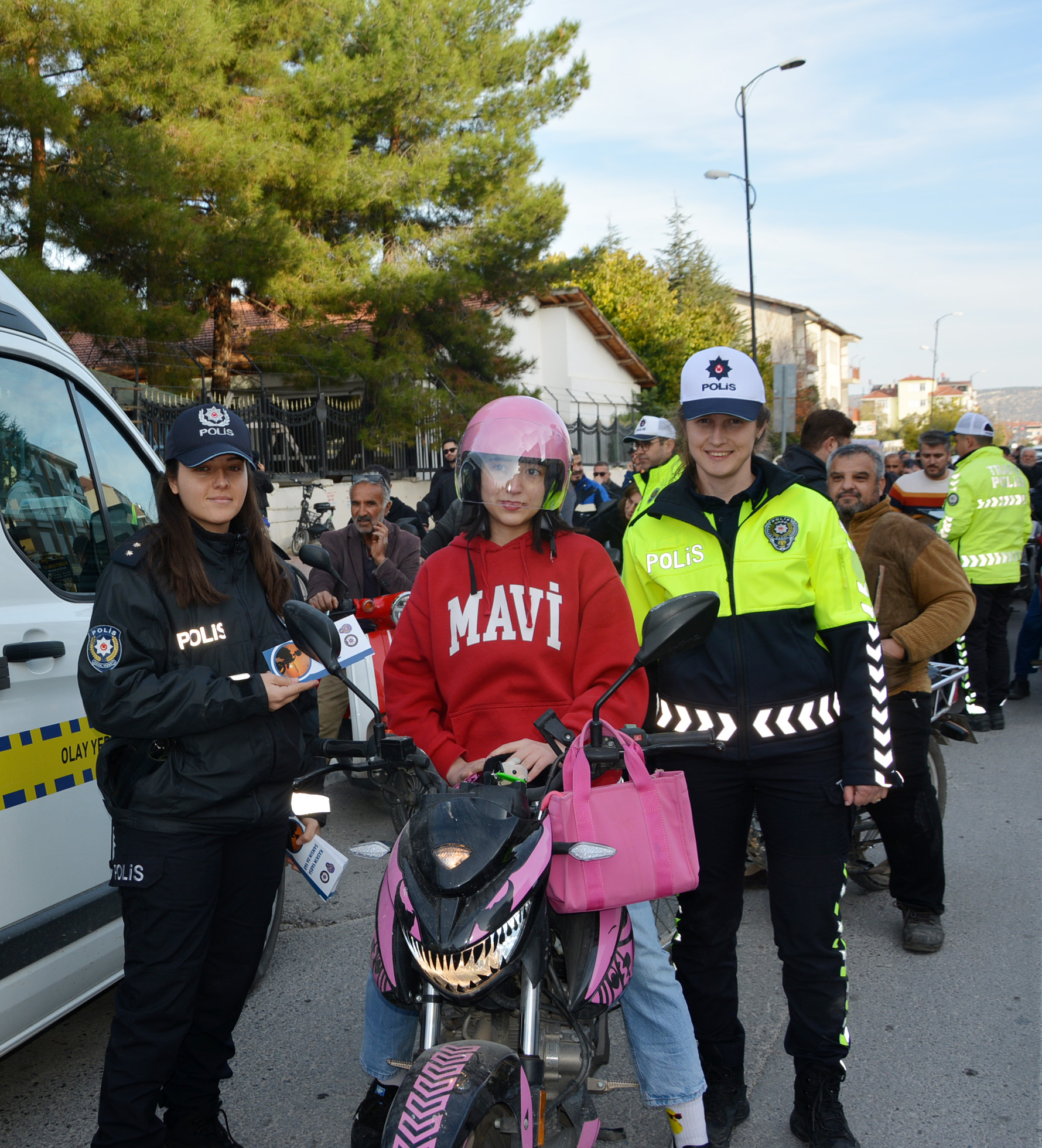haberimizvar.net- Toplum Destekli Polislik Büro Amirliği ve Trafik Denetleme Büro Amirliği koordinasyonunda hazırlanan 'Kaskın Varsa Şansın da Var' projesi kapsamında, ilçede motorlu ve bisikletli sürücülere ücretsiz kask dağıtımı yapıldı. Korkuteli’deki liselerin önünde gerçekleştirilen etkinlikte trafik polisleri, sürücülere hem kasklarını takmaları konusunda uyarılarda bulundu hem de bilgilendirici broşürler dağıtarak güvenli sürüşün önemini anlattı.