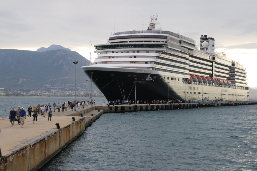 Antalya'nın Alanya ilçesine demirleyen 'Oosterdam' adlı kruvaziyer çoğunluğu ABD'li 1878 turist getirdi.