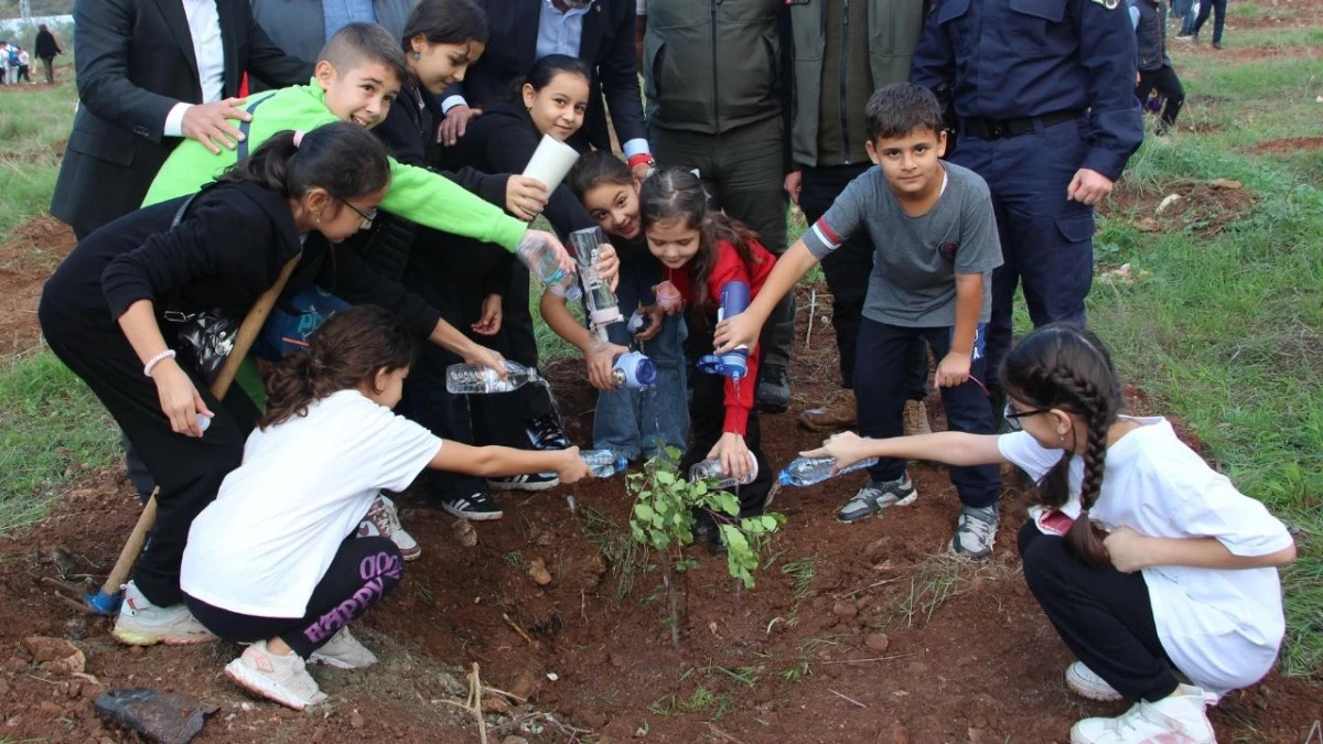 Antalya'nın Kumluca ilçesinde 'Bir çocuk, bir fidan, bir gelecek' sloganıyla düzenlenen etkinlikte 300 fidan toprakla buluşturuldu. Fidanlara can suyunu öğrenciler yanlarında getirdikleri şişe ve mataralarından verdi.